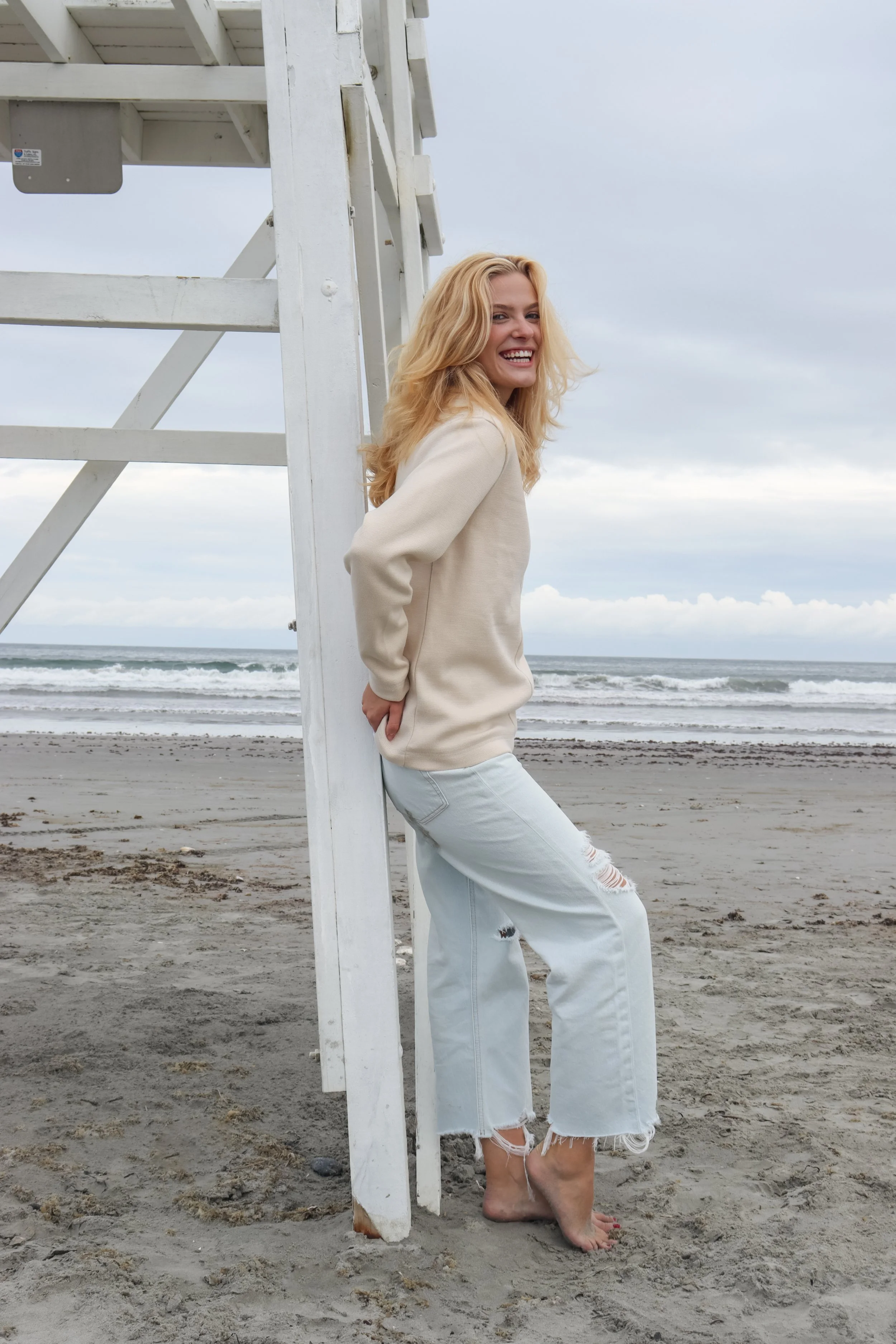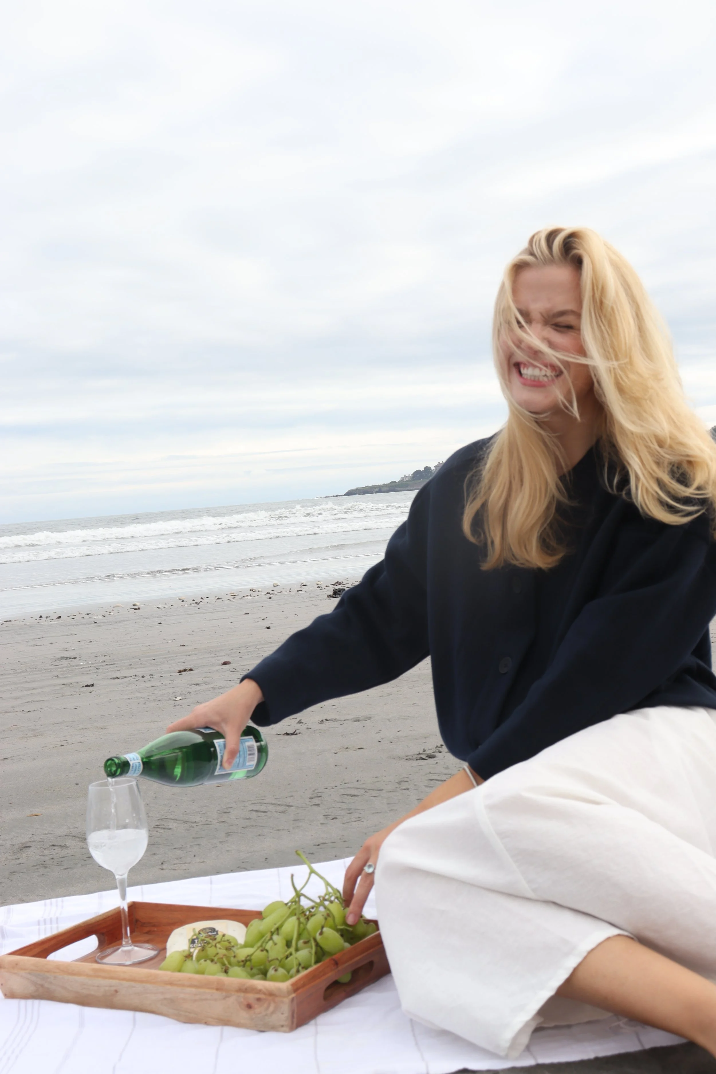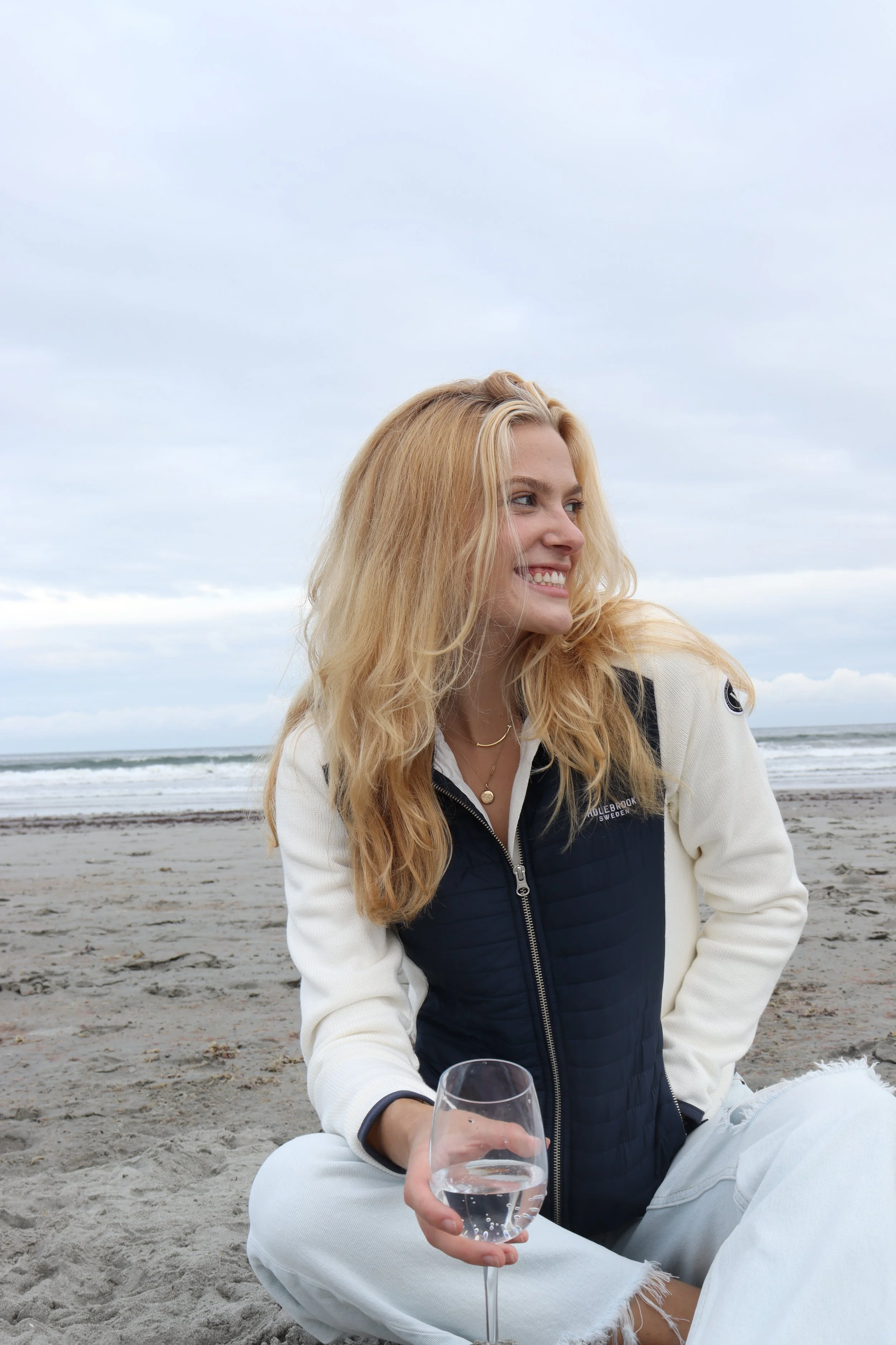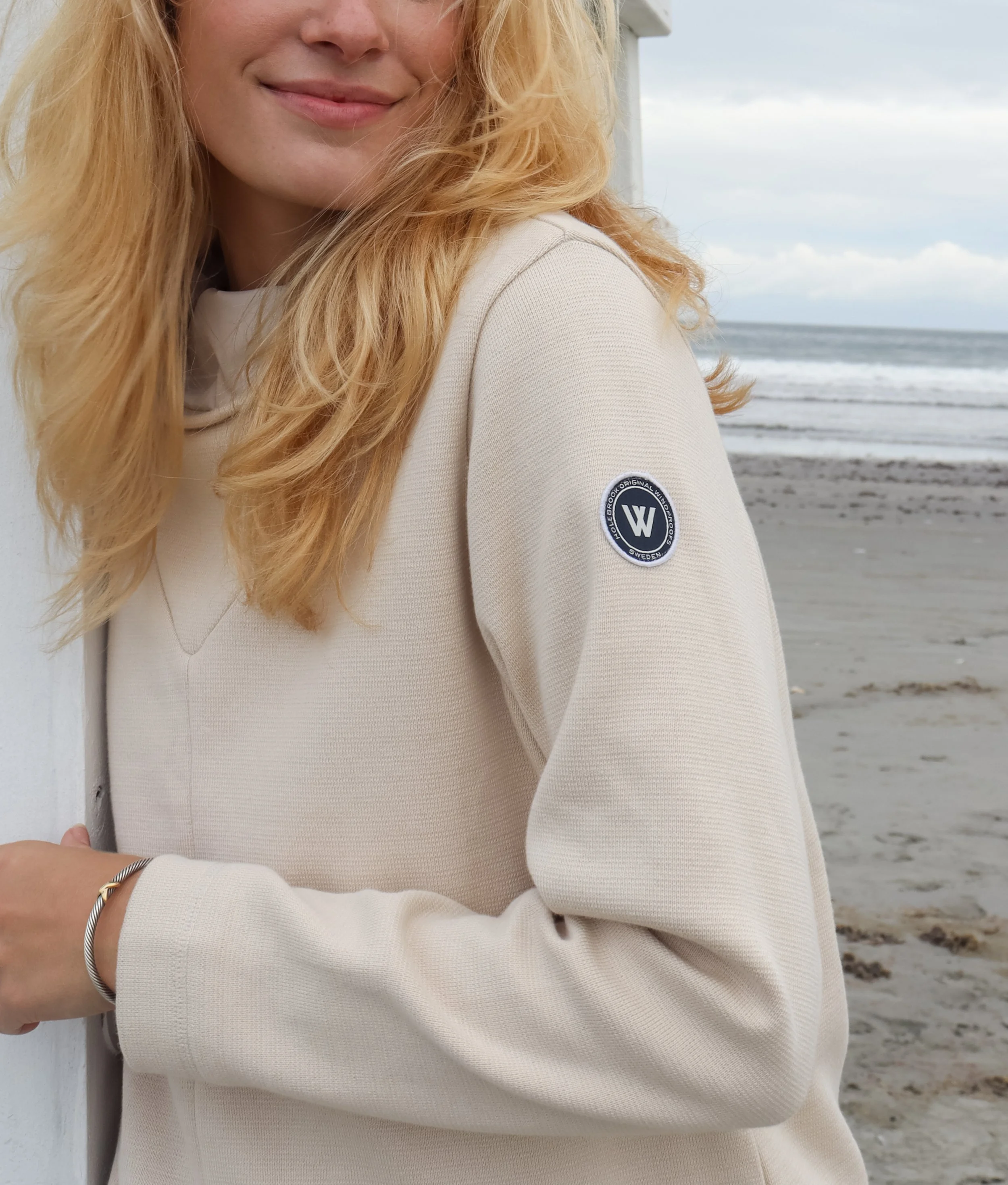 This coastal campaign highlights easy, mix-and-match layers made for days when the ocean breeze shifts without warning. Lightweight merino sweaters are perfect for pulling on after a salty swim, while windproof jackets and mock-neck styles add just the right amount of warmth as the sun dips. Paired with linens and effortless summer staples, the collection is designed for real New England living— beautiful textures and unexpected chill