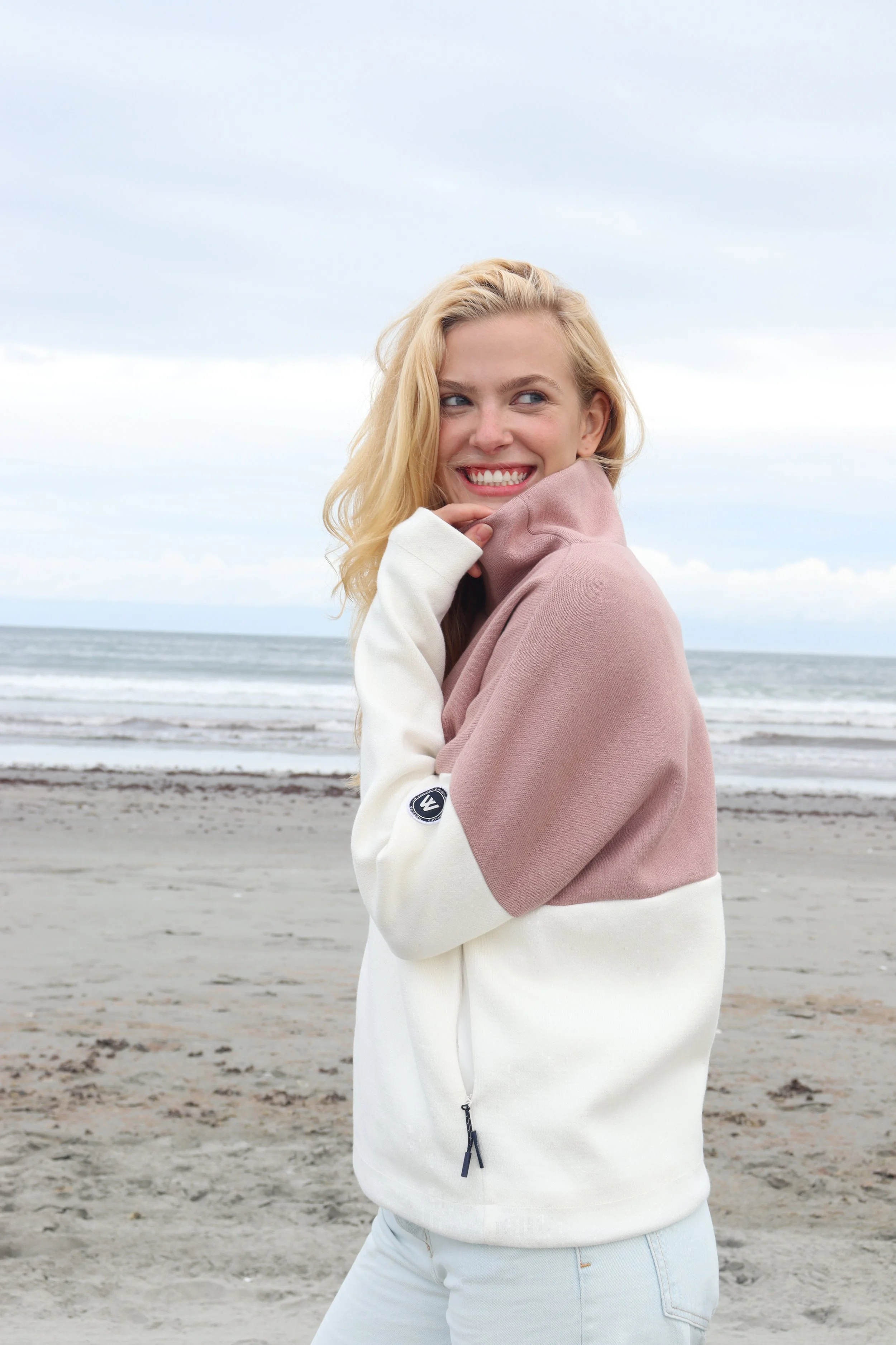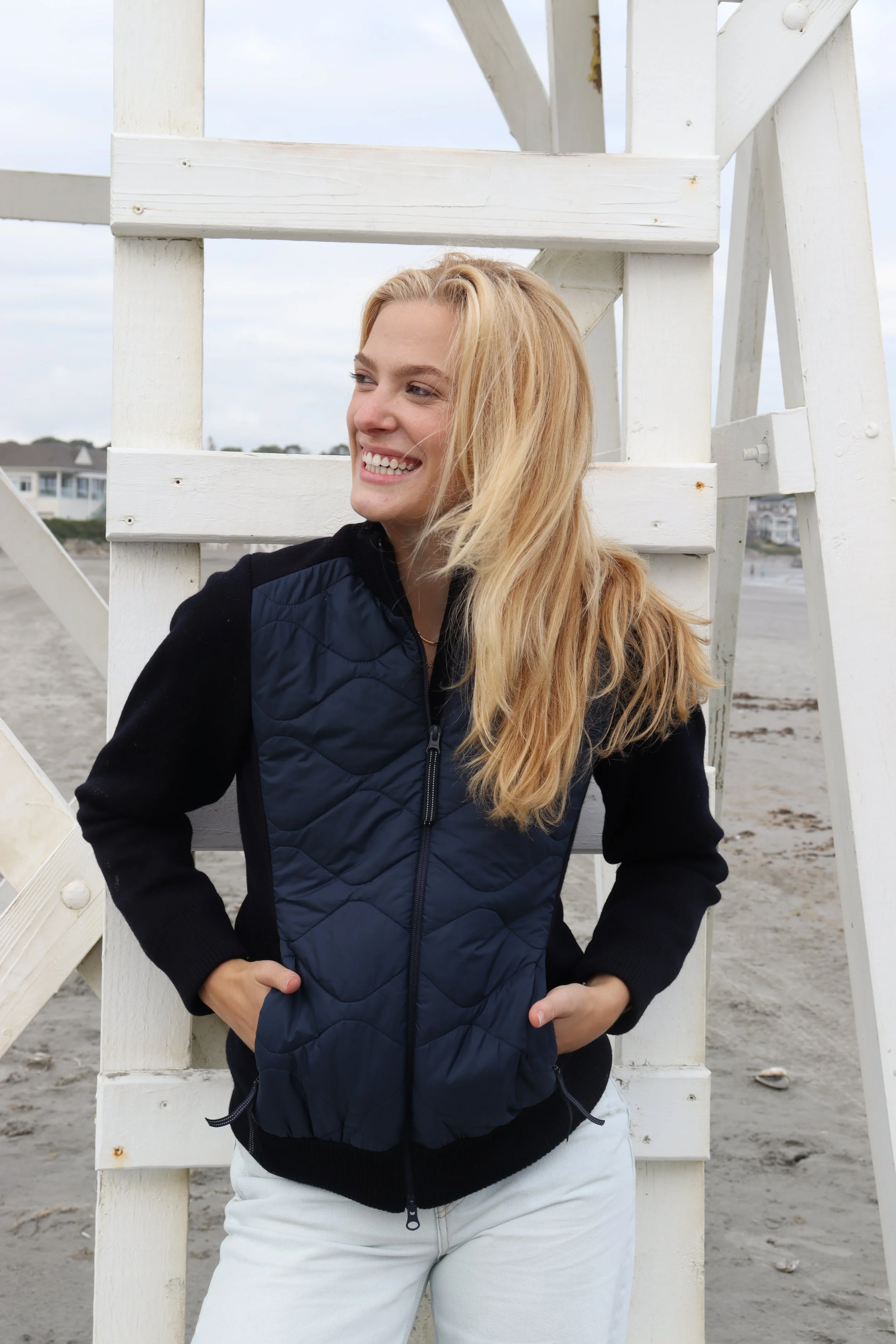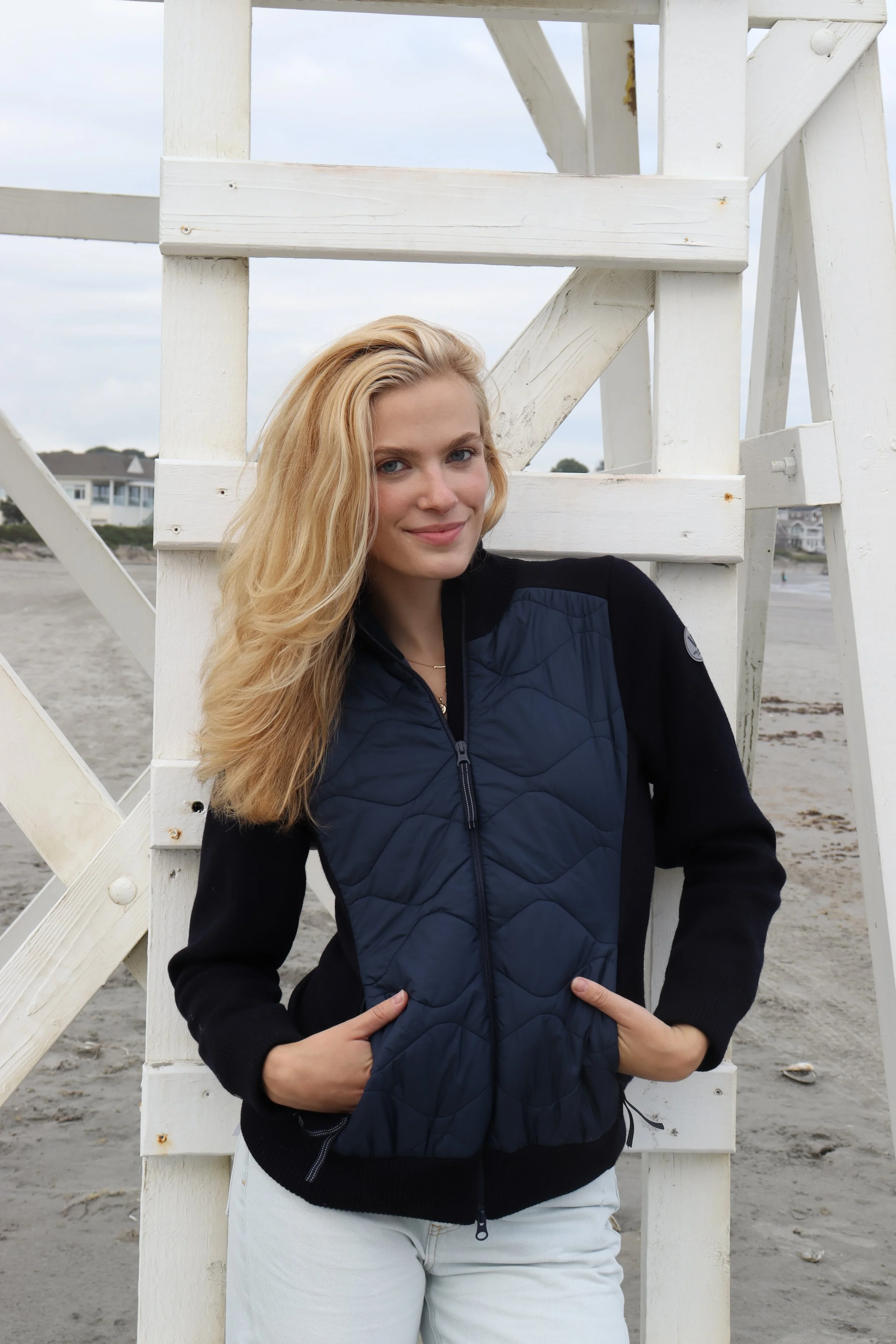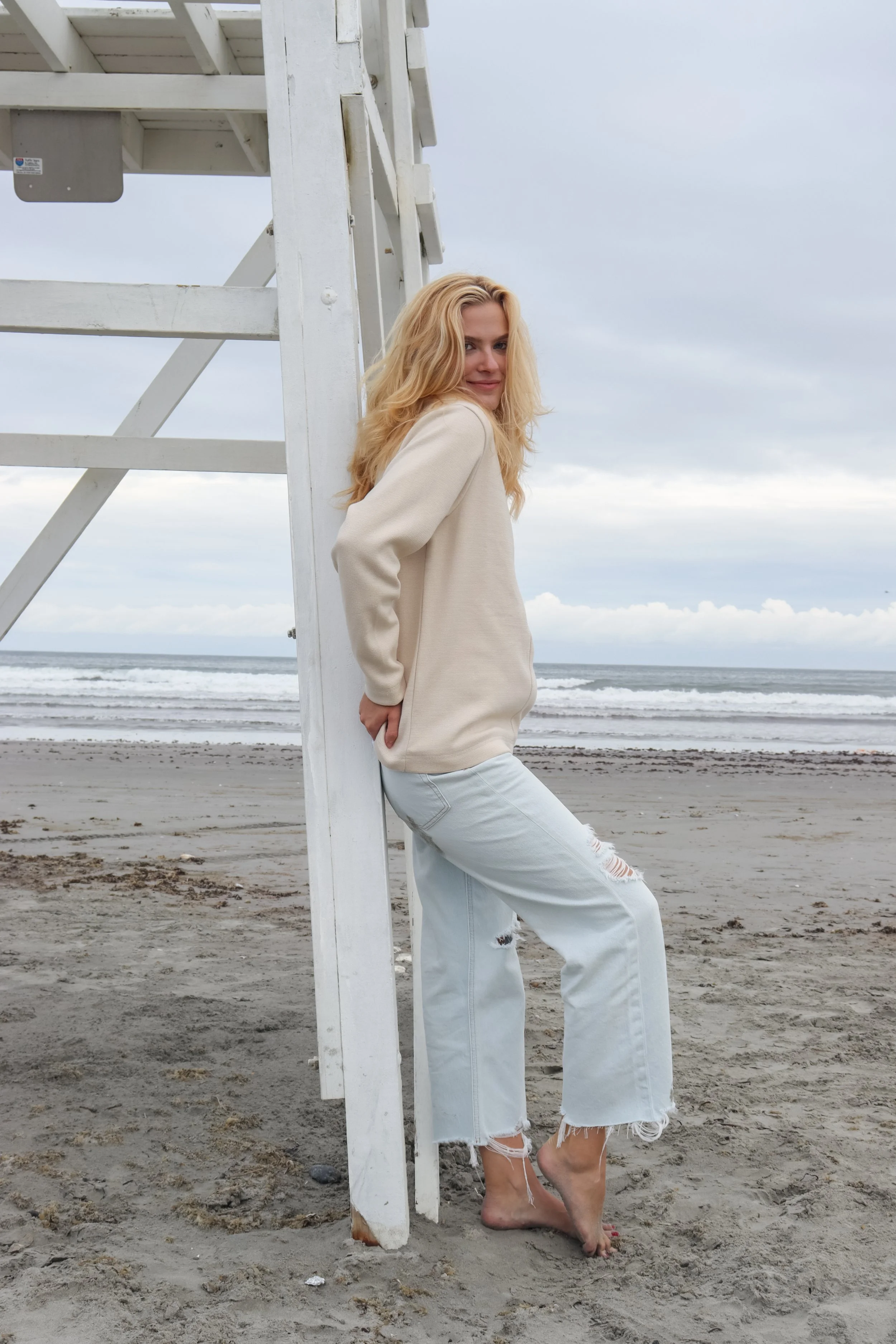 This coastal campaign highlights easy, mix-and-match layers made for days when the ocean breeze shifts without warning. Lightweight merino sweaters are perfect for pulling on after a salty swim, while windproof jackets and mock-neck styles add just the right amount of warmth as the sun dips. Paired with linens and effortless summer staples, the collection is designed for real New England living— beautiful textures and unexpected chill