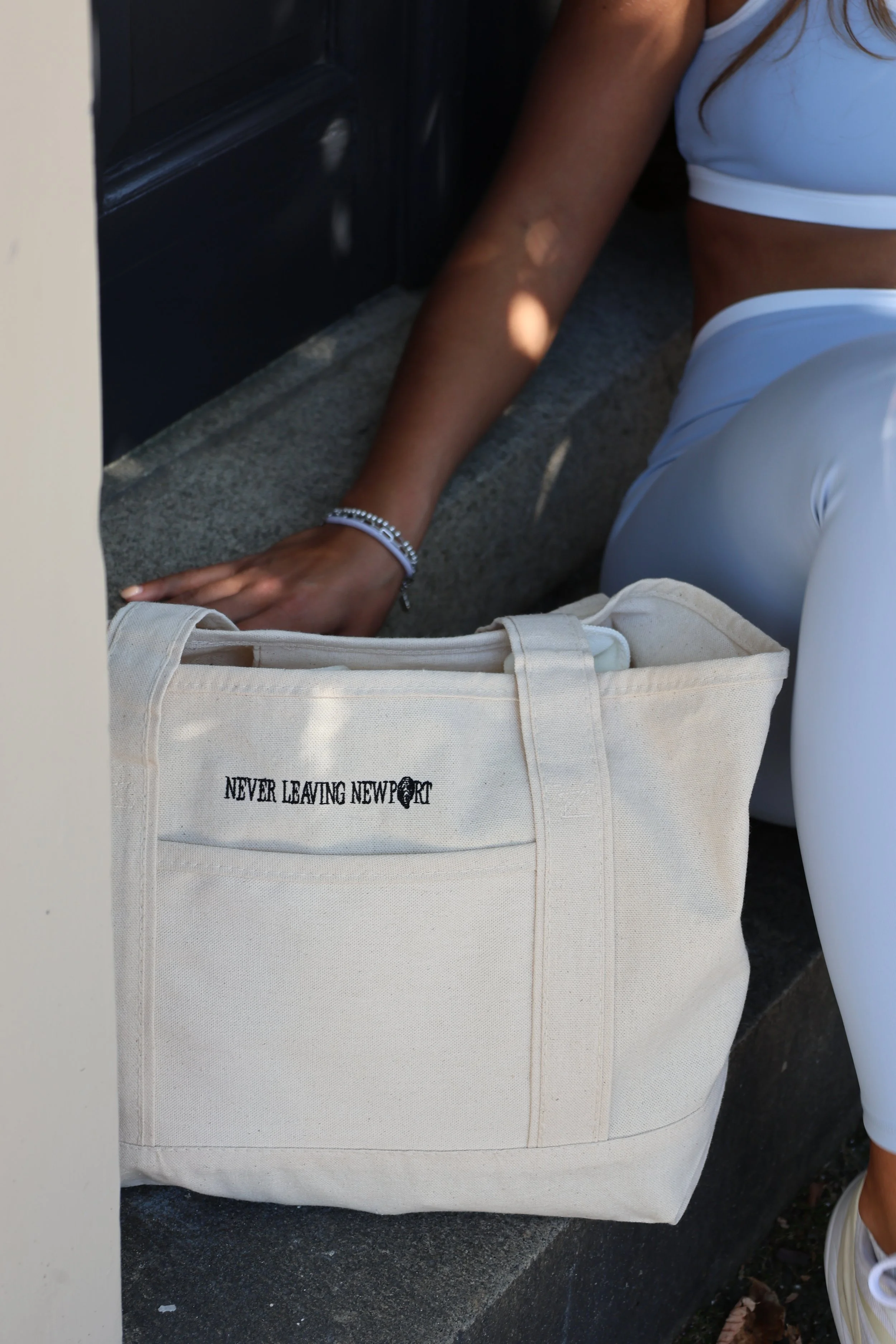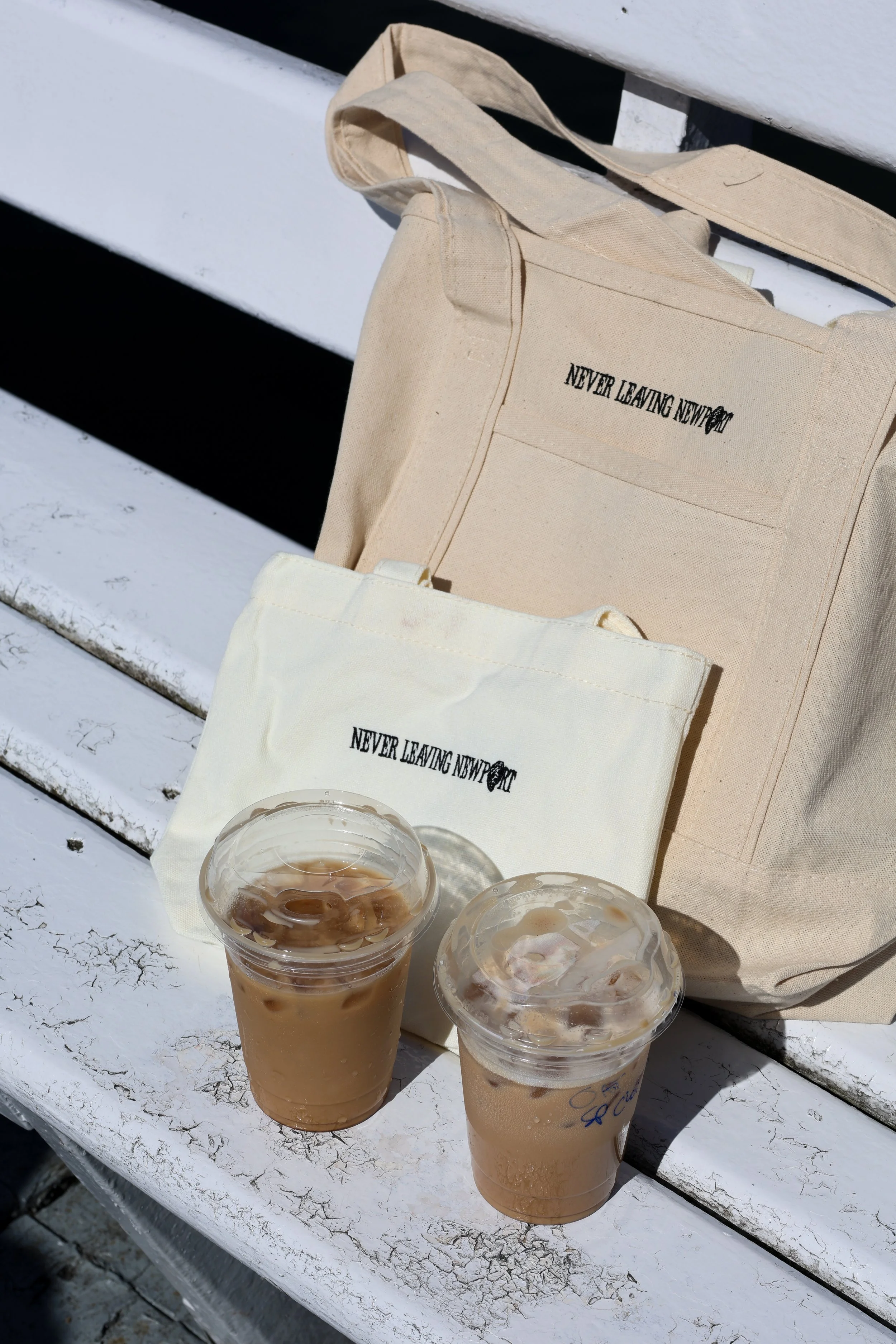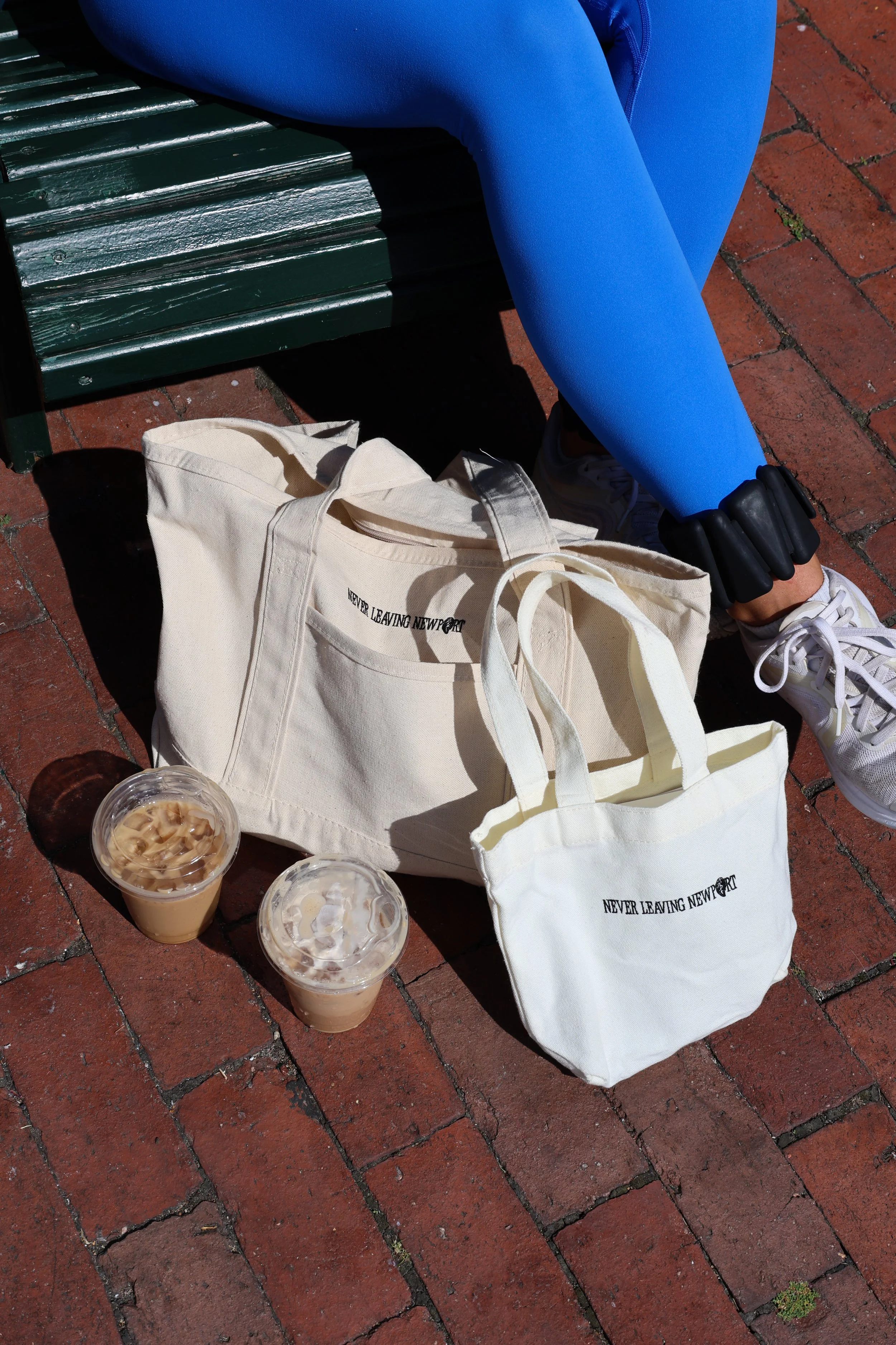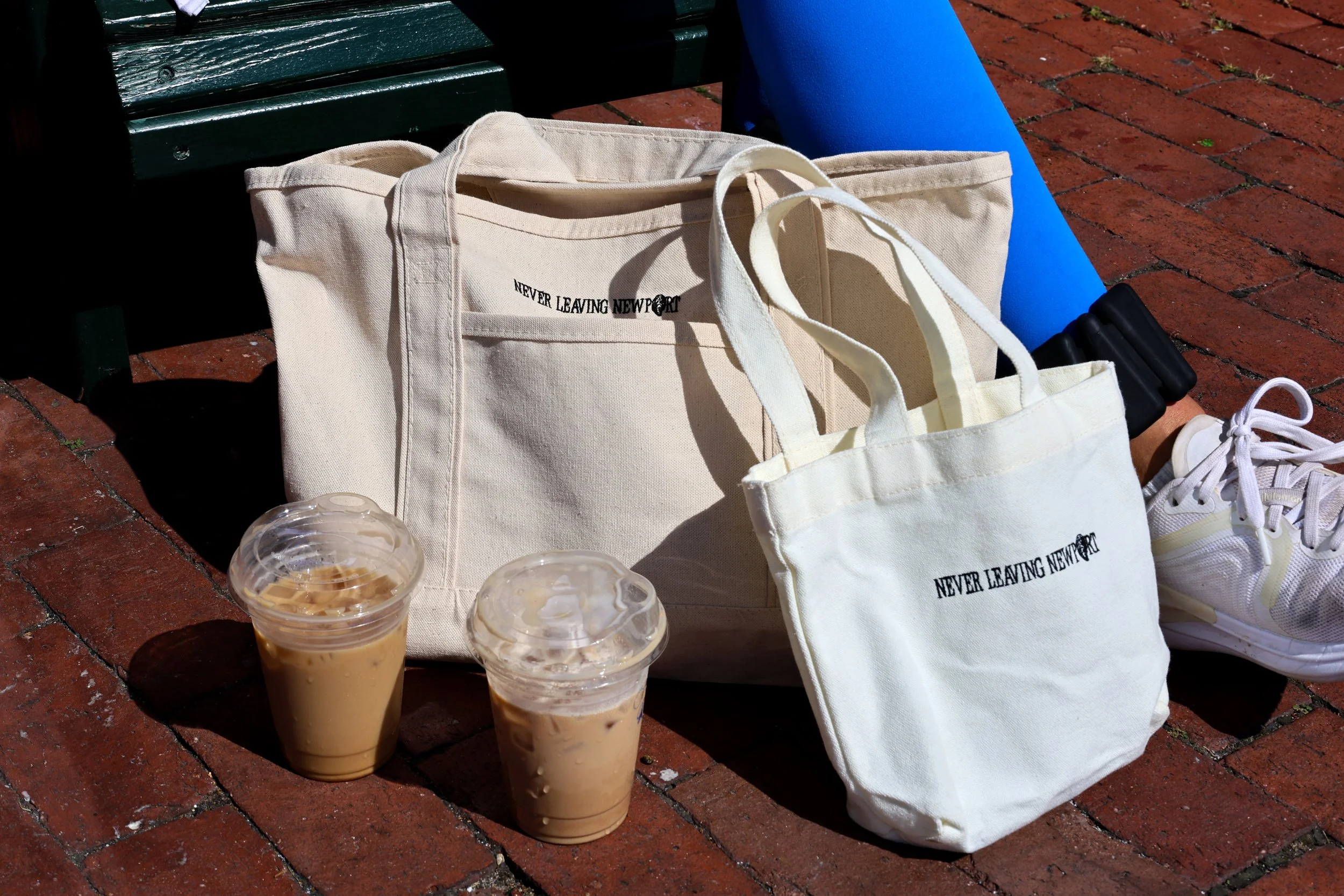 Never Leaving Newport’s latest tote campaign celebrates movement, community, and the everyday rhythm of downtown life. Shot in the heart of Newport, it pairs their small and large branding totes with an ocean blue yoga set’s—designed to feel right at home in the city we love. Practical, timeless, and made for wherever your day moves you.