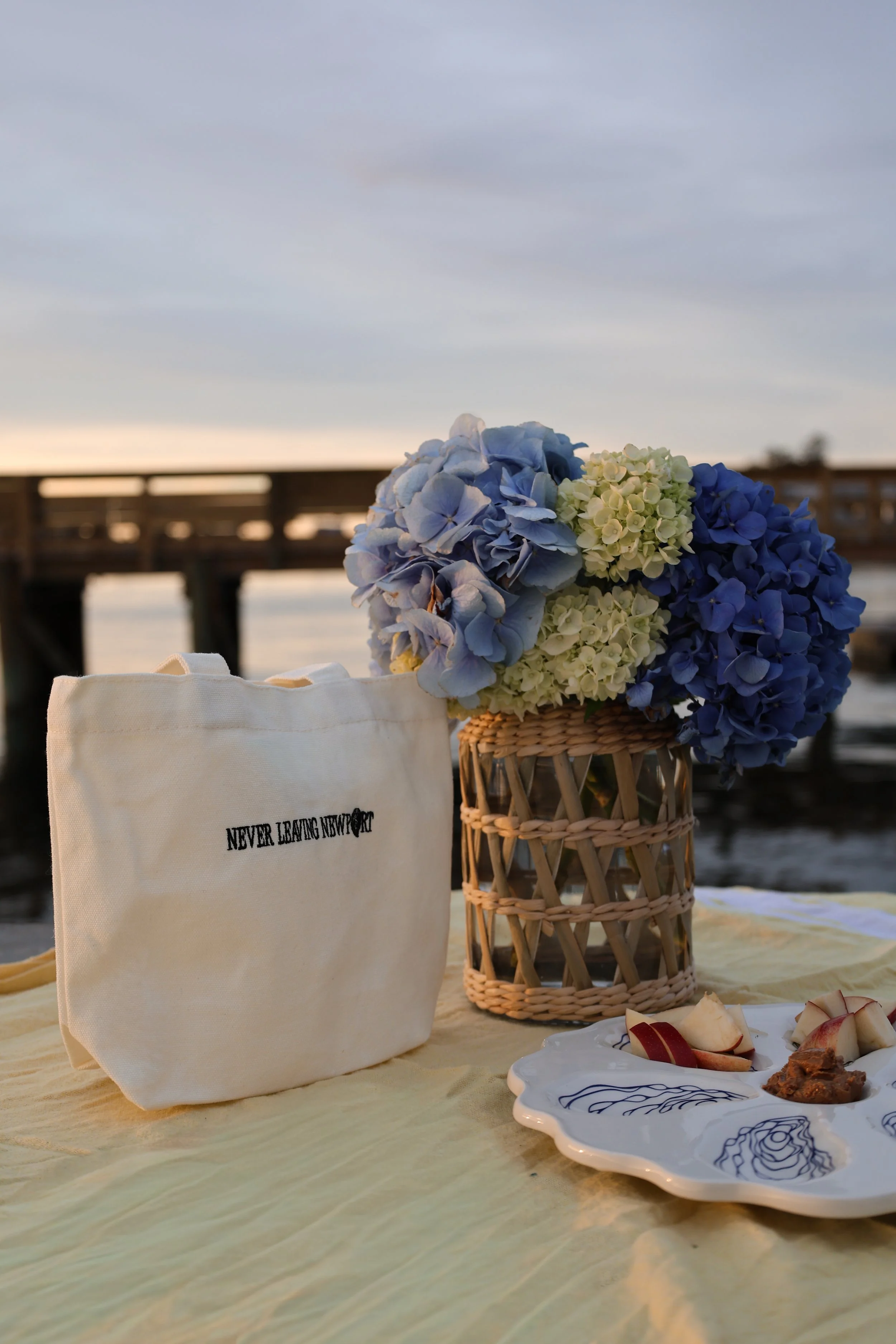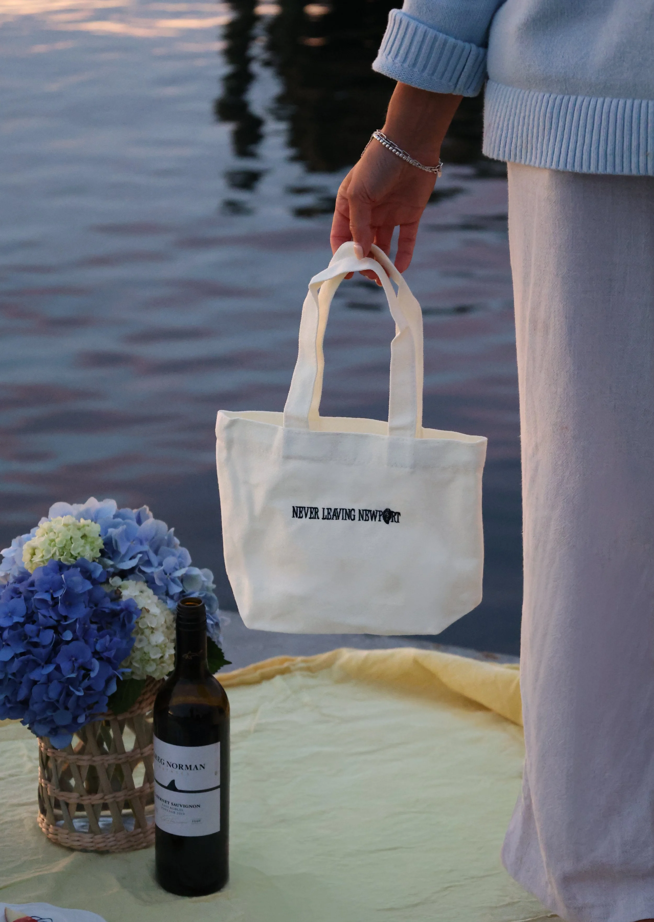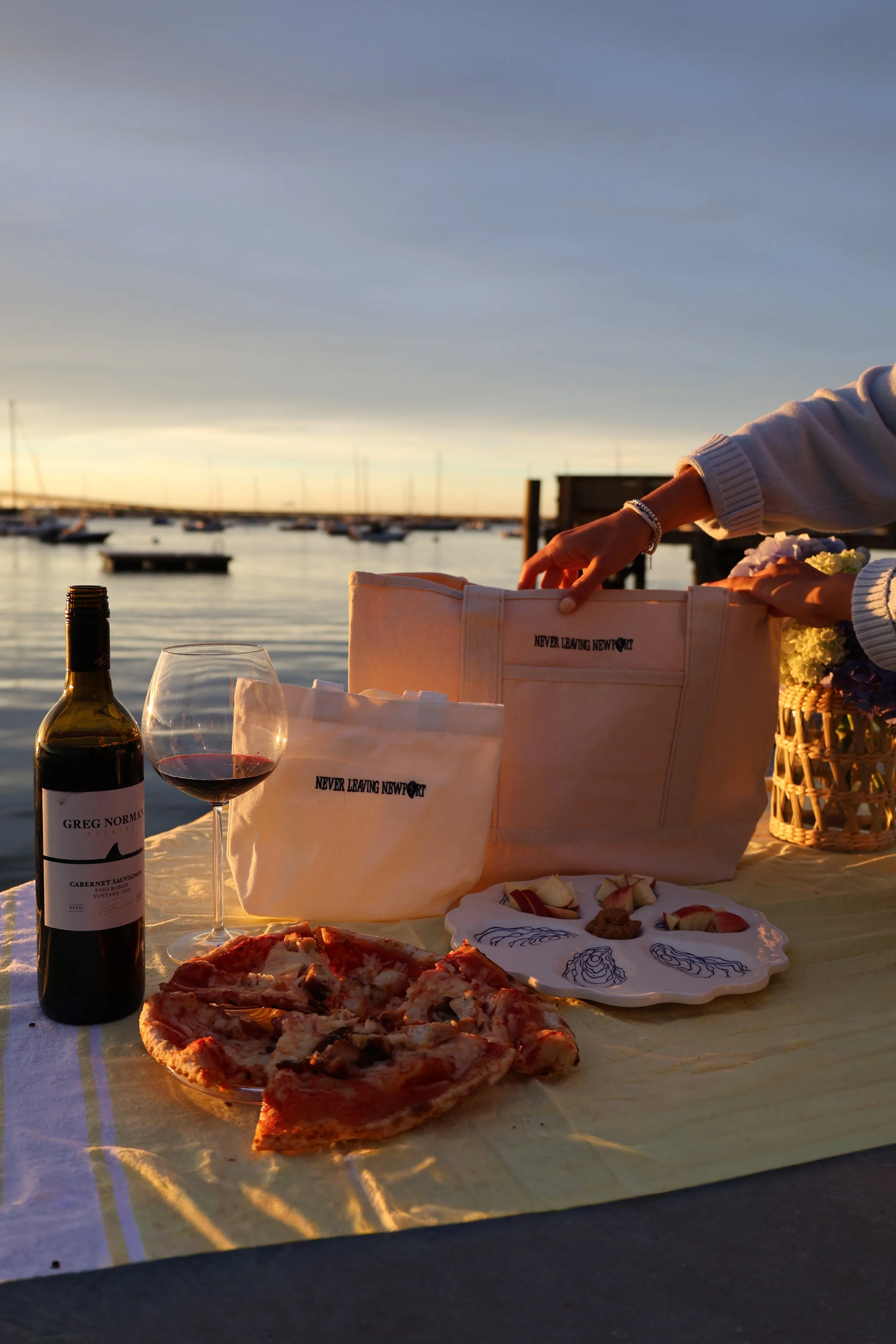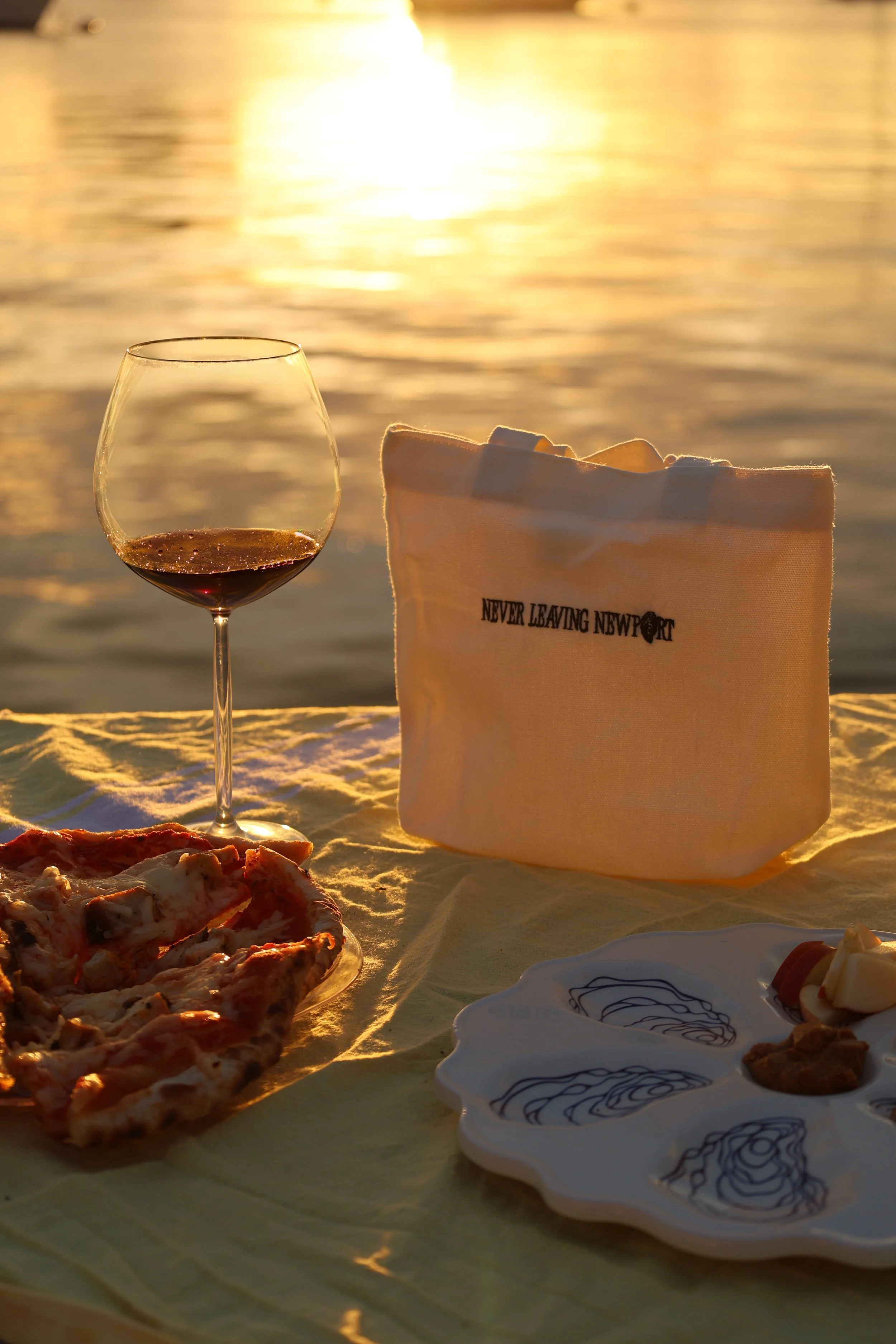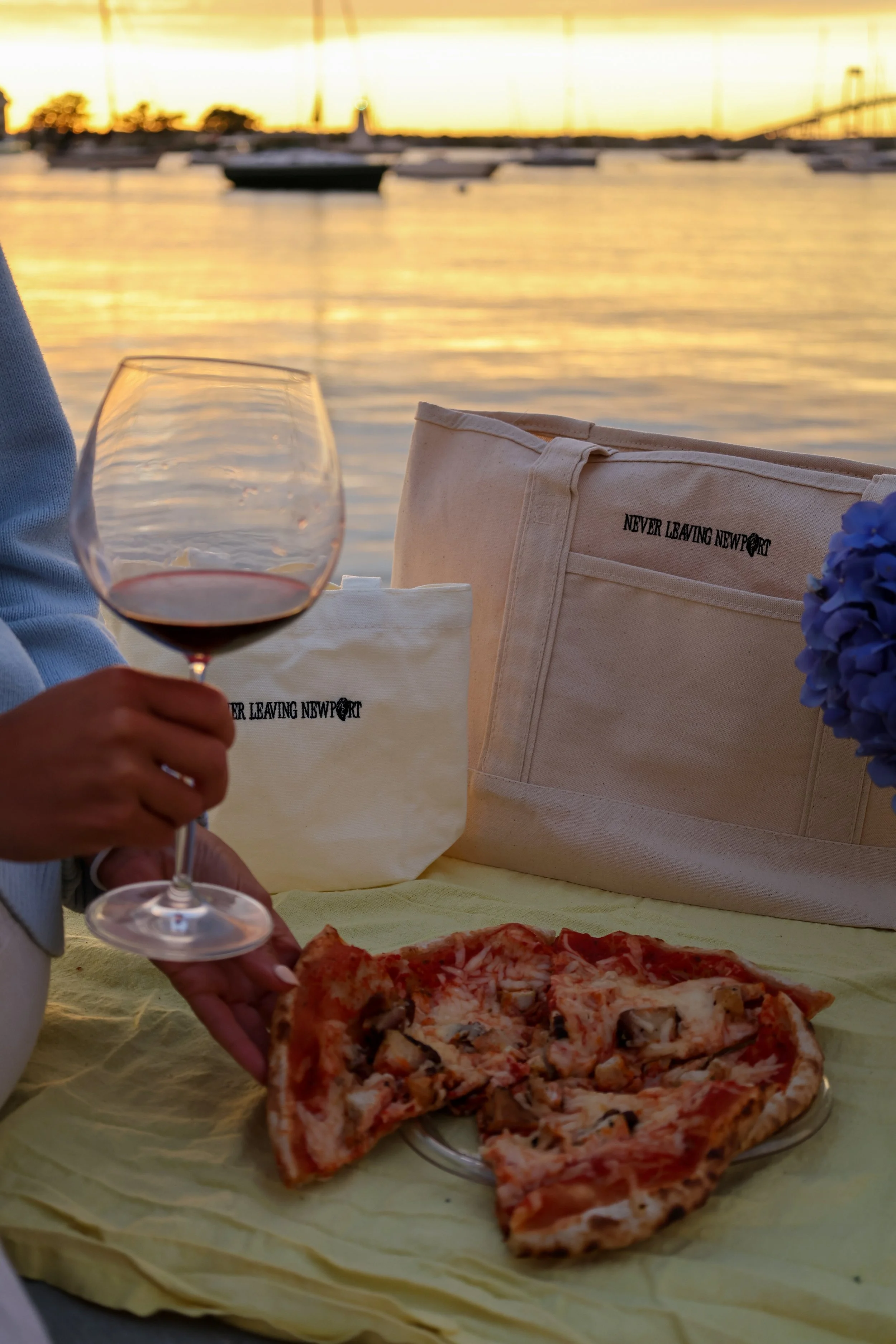 For the next chapter of our tote series, we headed to Goat Island—because what better place to introduce the perfect picnic tote than right where Newport meets the water? Framed by the Pell Bridge, this campaign grew from the idea of creating pieces that fit naturally into the way we live here: spontaneous sunsets, dockside hangs, and easy weekend picnics. It’s Never Leaving Newport, captured in a single scene.