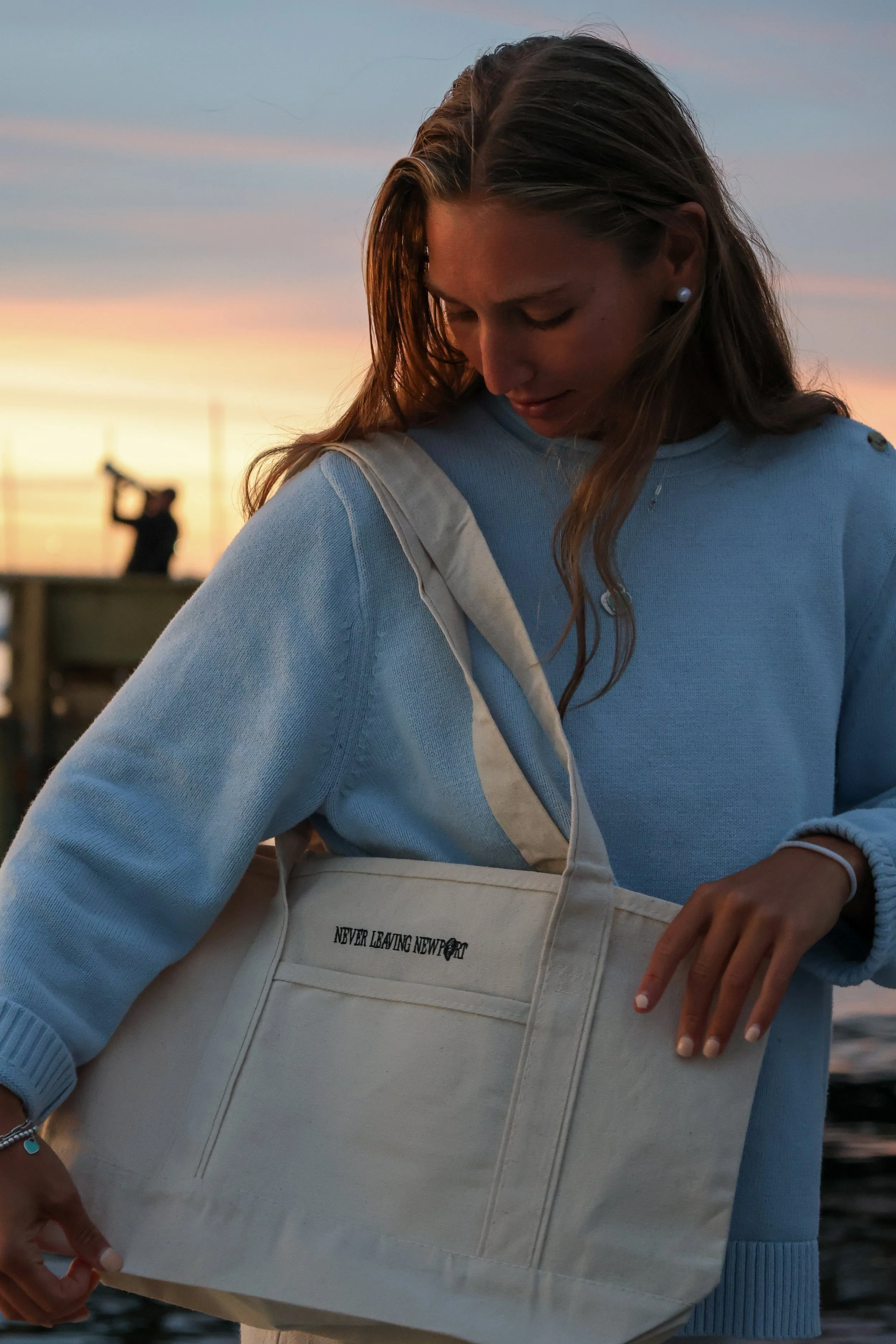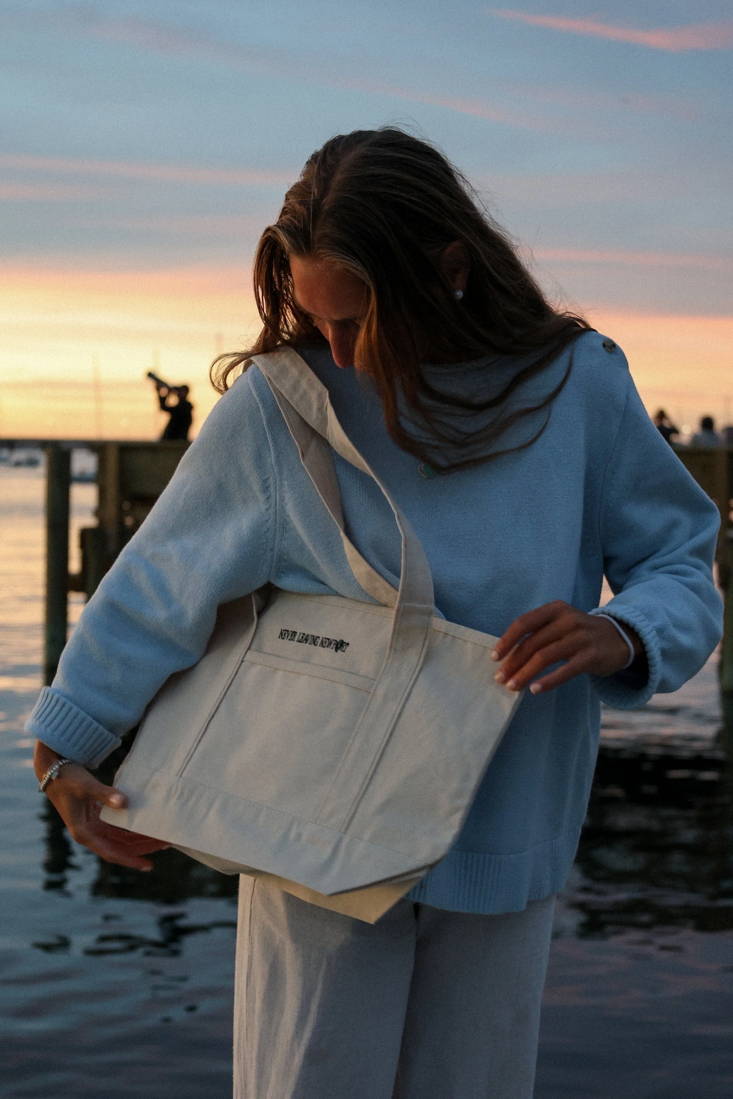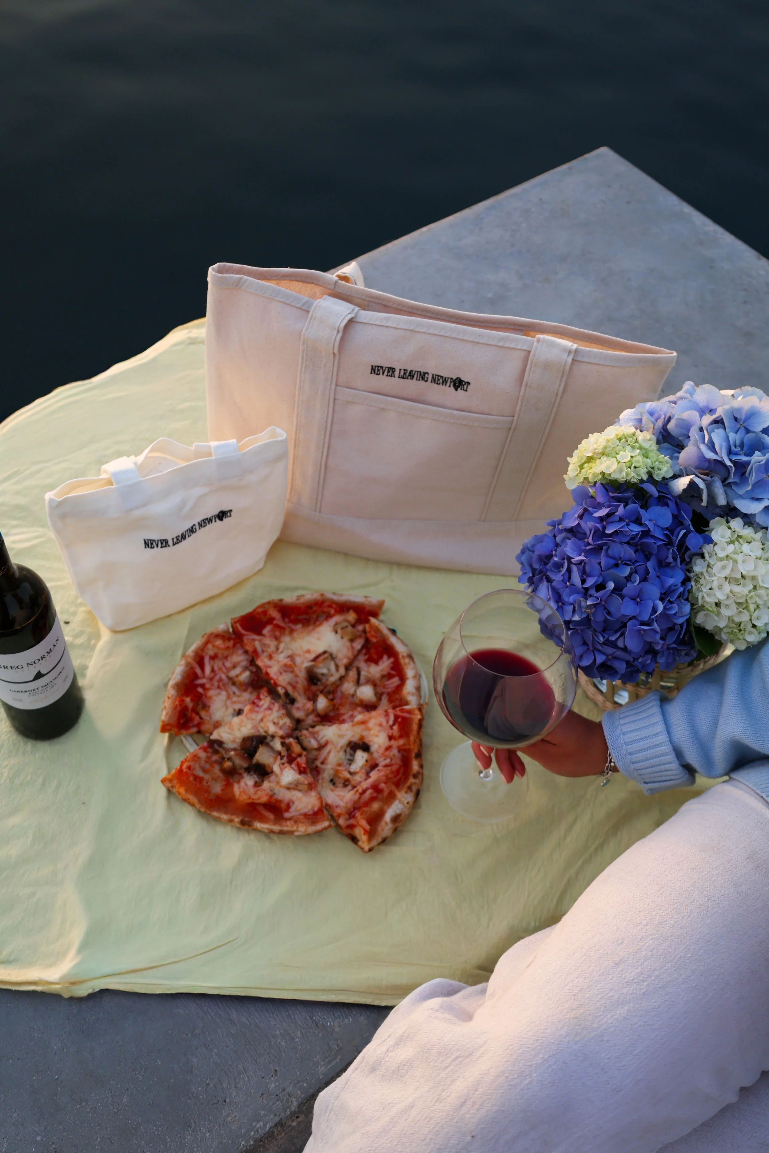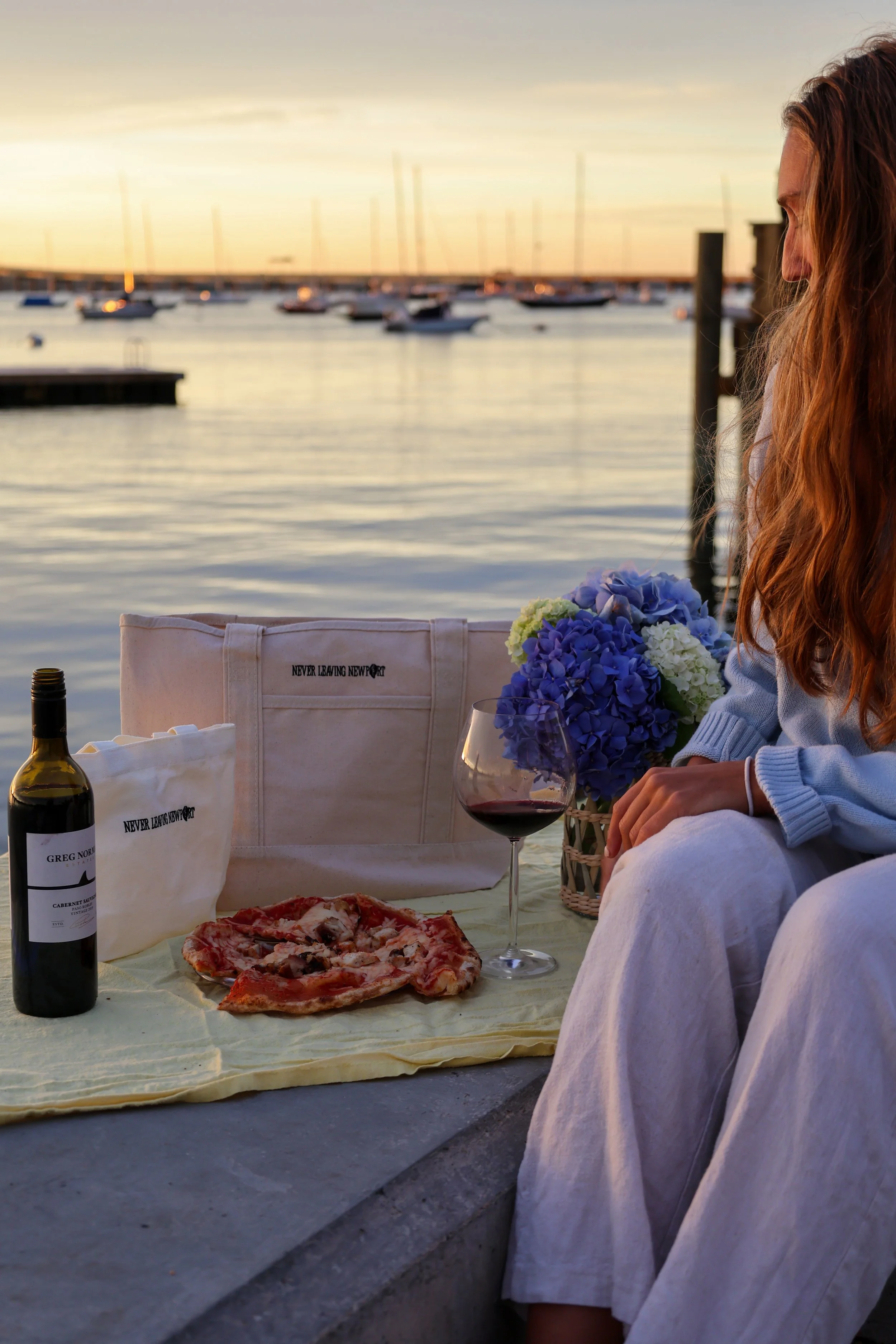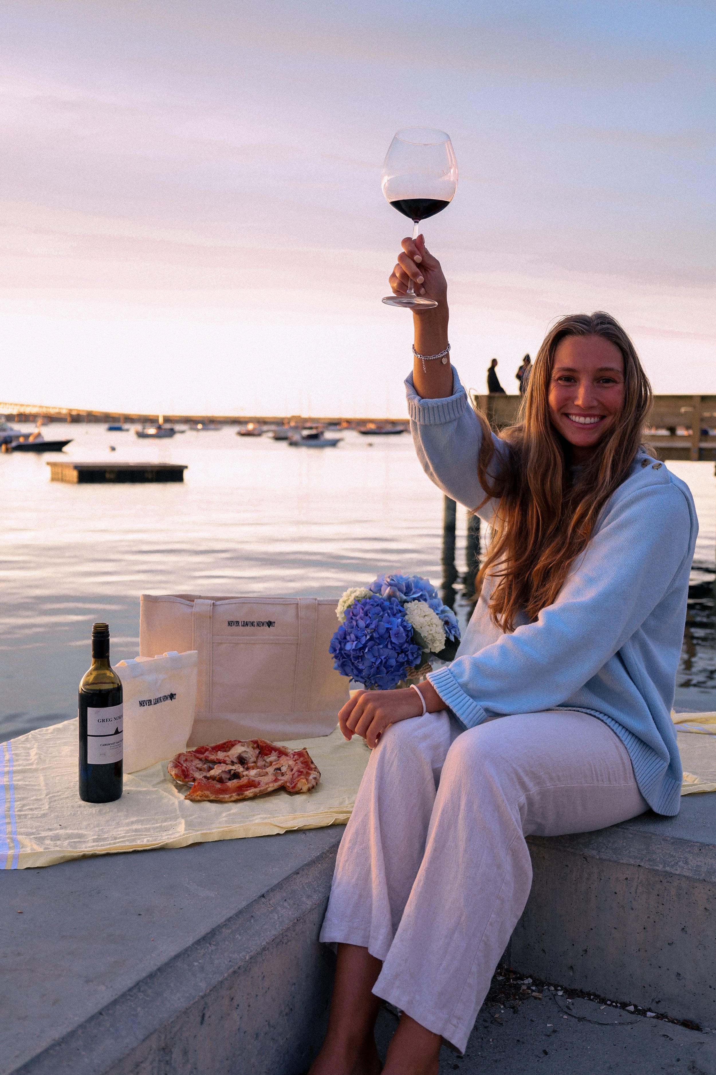 For the next chapter of our tote series, we headed to Goat Island—because what better place to introduce the perfect picnic tote than right where Newport meets the water? Framed by the Pell Bridge, this campaign grew from the idea of creating pieces that fit naturally into the way we live here: spontaneous sunsets, dockside hangs, and easy weekend picnics. It’s Never Leaving Newport, captured in a single scene.